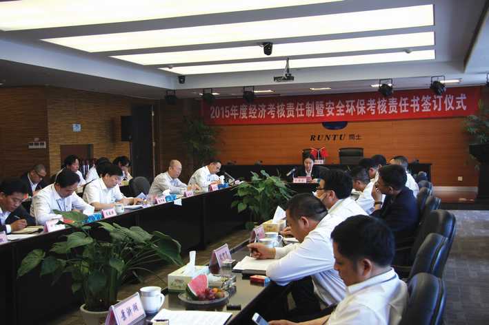 ——閏土股份舉行2015年度經(jīng)濟(jì)考核責(zé)任制暨安全環(huán)??己素?zé)任書簽訂儀式