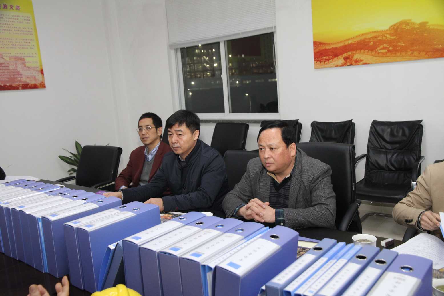檢查組領導在認真聽取企業(yè)關于安全生產(chǎn)工作的匯報。圖中,中間為國家安監(jiān)總局職業(yè)健康司副司長王建冬、左一為省安監(jiān)局總工程師李公杭、右一為紹興市政府副秘書長章國金。