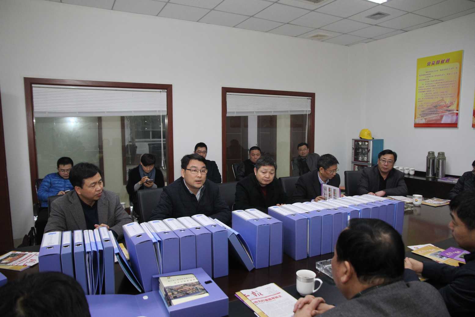 股份公司總經(jīng)理徐萬福(左三)和閏土新材料公司總經(jīng)理周杰文(左二)分別向檢查組領導匯報了集團公司整體安全生產(chǎn)工作情況和閏土新材料公司安全隱患整改工作(右二為上虞區(qū)委常委、杭州灣上虞經(jīng)濟技術開發(fā)區(qū)管委會主任胡文煒,左一為上虞區(qū)副區(qū)長王永表,右一為上虞區(qū)安監(jiān)局局長徐沛生)