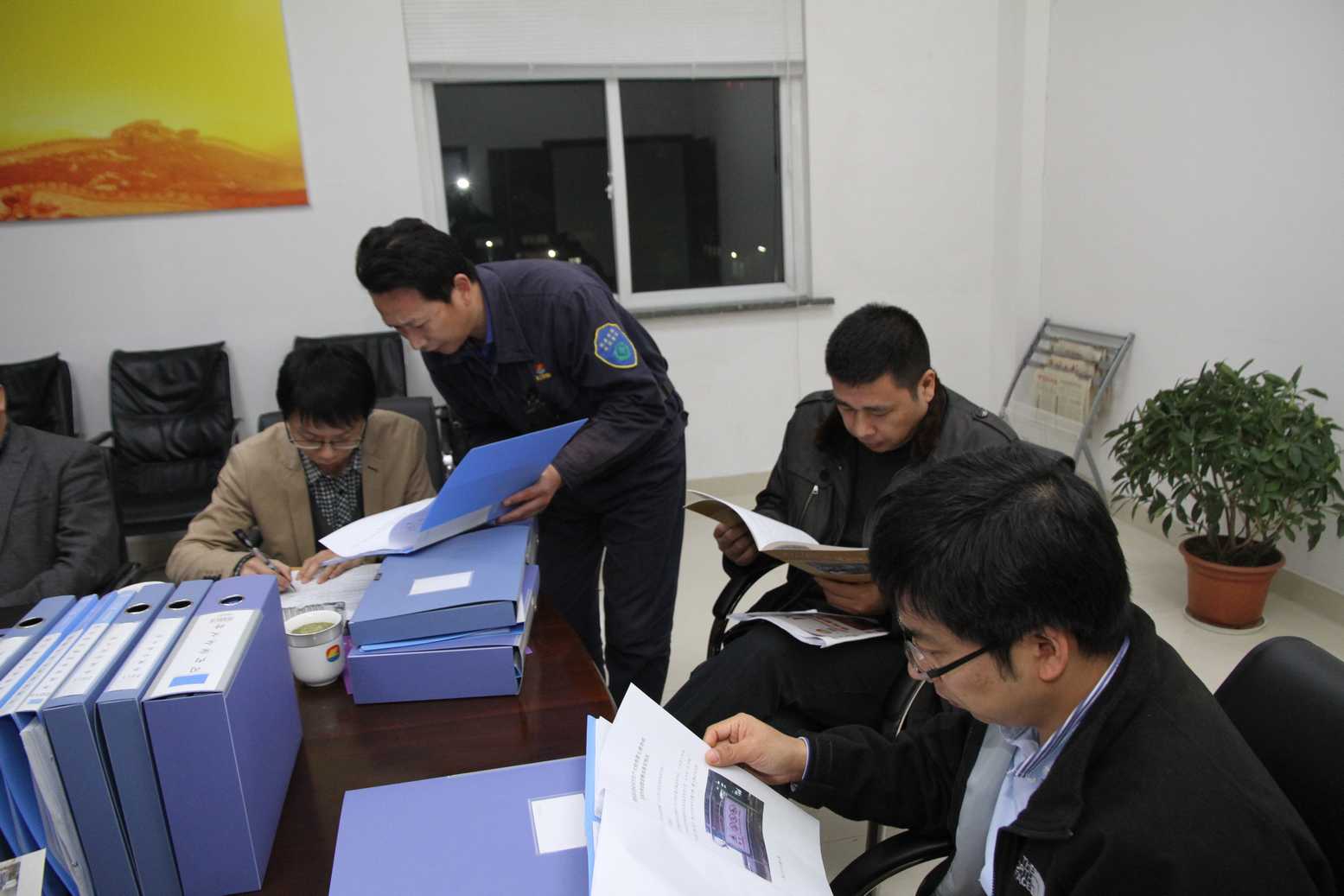 檢查組一行在認真查閱企業(yè)安全生產(chǎn)臺賬。