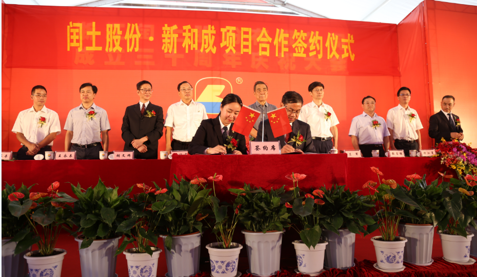 9月17日上午,浙江閏土股份有限公司成立三十周年慶祝大會暨閏土股份·新和成特種新材料項(xiàng)目合作簽約儀式在閏土生態(tài)工業(yè)園隆重舉行。省、市、區(qū)各級政府相關(guān)領(lǐng)導(dǎo),多家行業(yè)協(xié)會、高等院校專家學(xué)者,客戶代表,閏土股份中高層領(lǐng)導(dǎo),各子公司領(lǐng)導(dǎo)和職工代表齊聚一堂,共話光輝歷程,共謀美好未來。